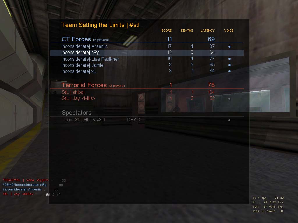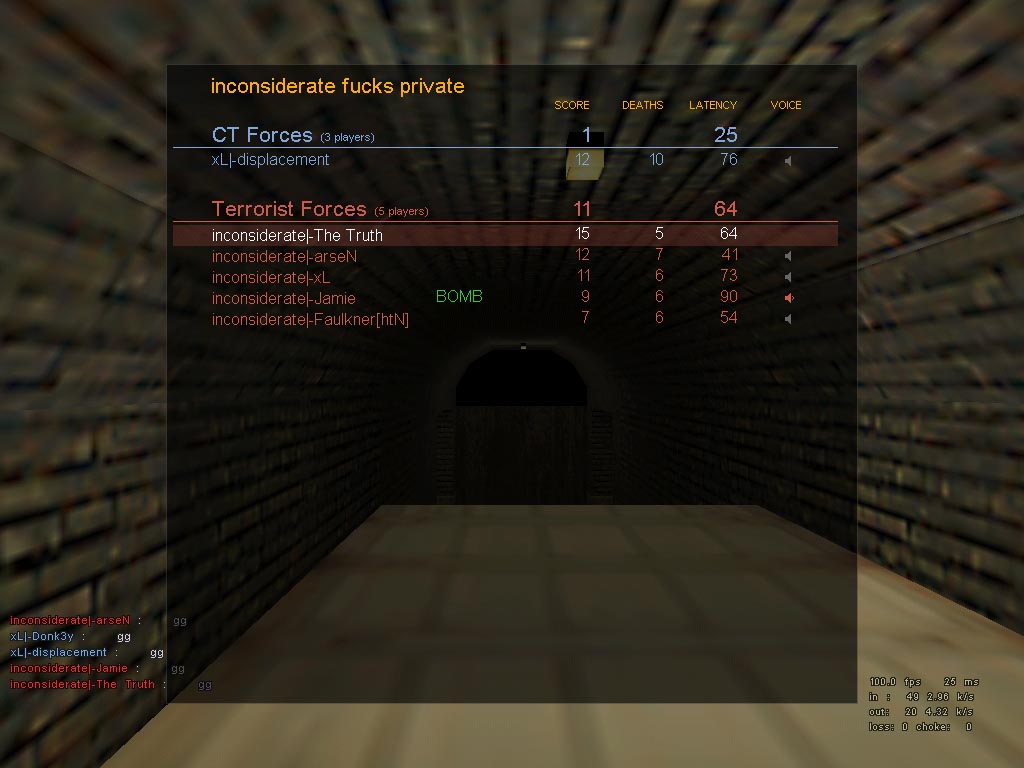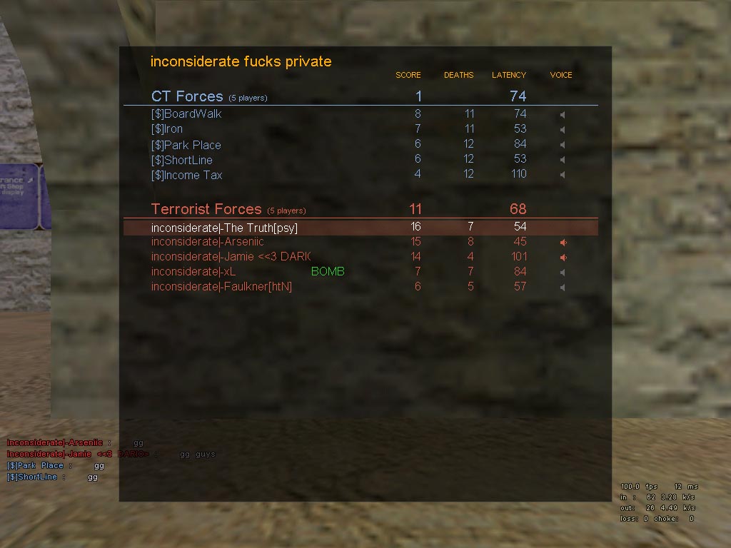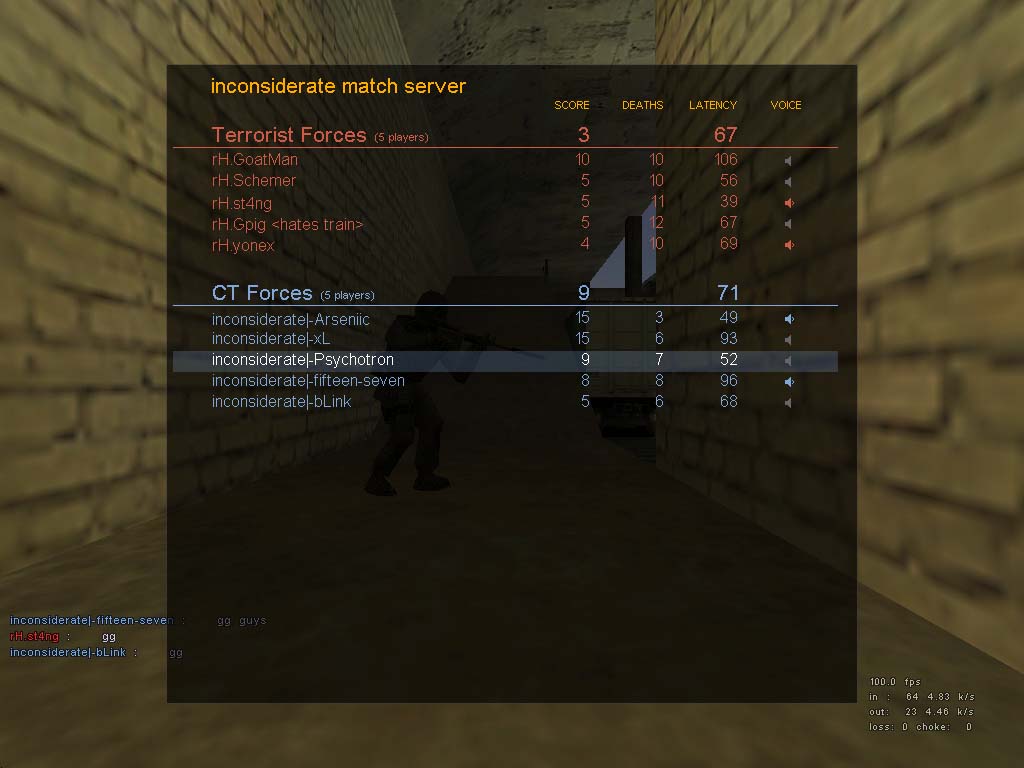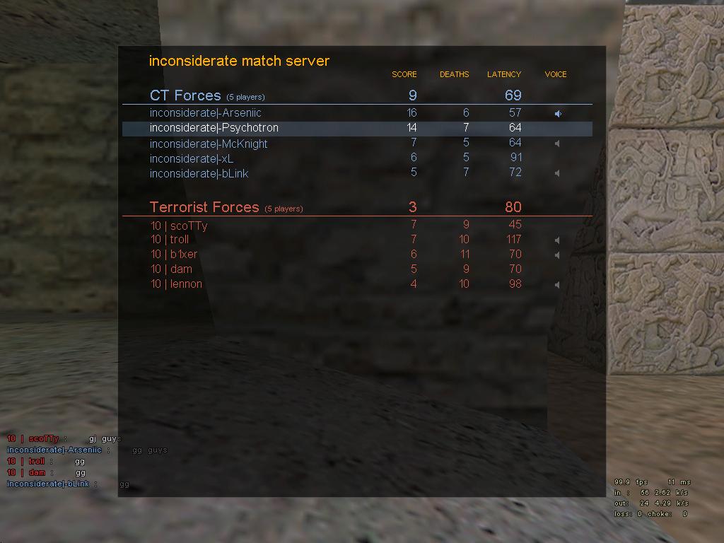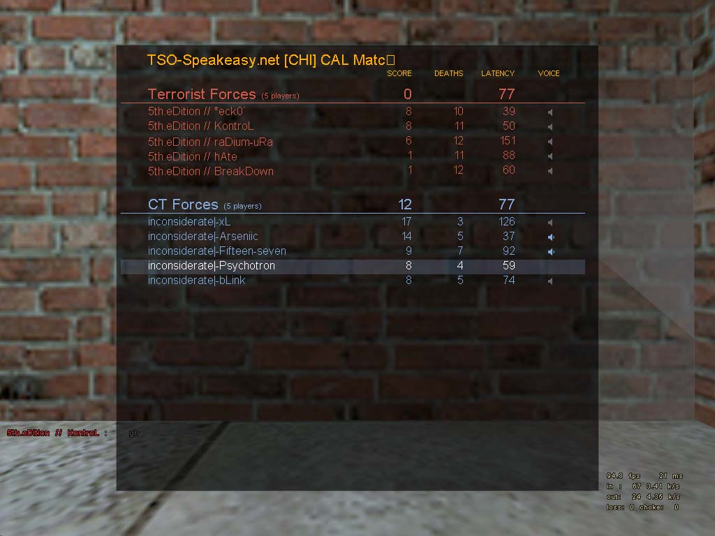 | Face the Music | de_nuke | 2006-08-03 | 09-21 | CT - T | CAL-IM | Loss |