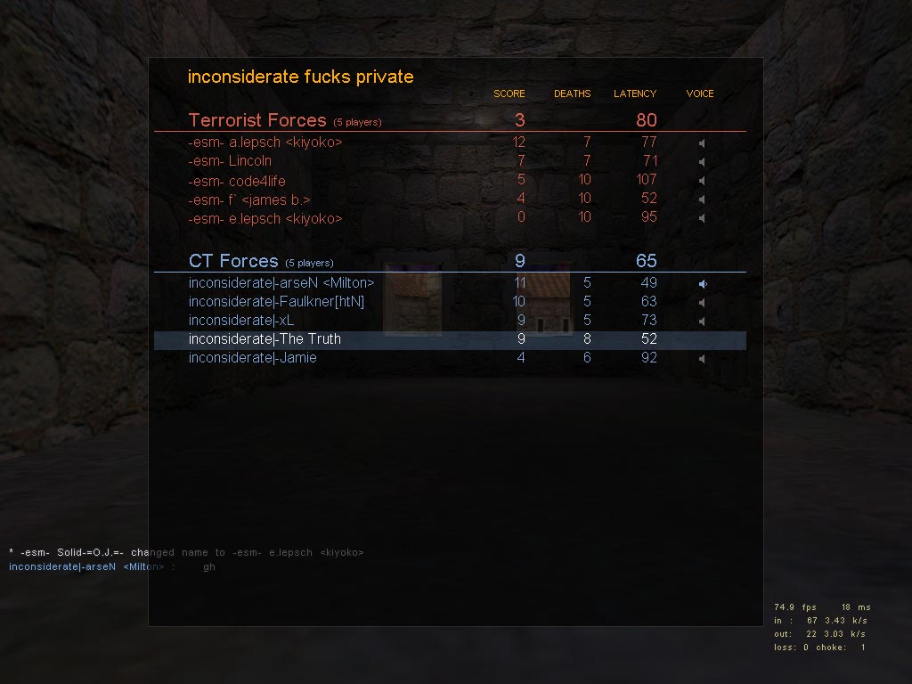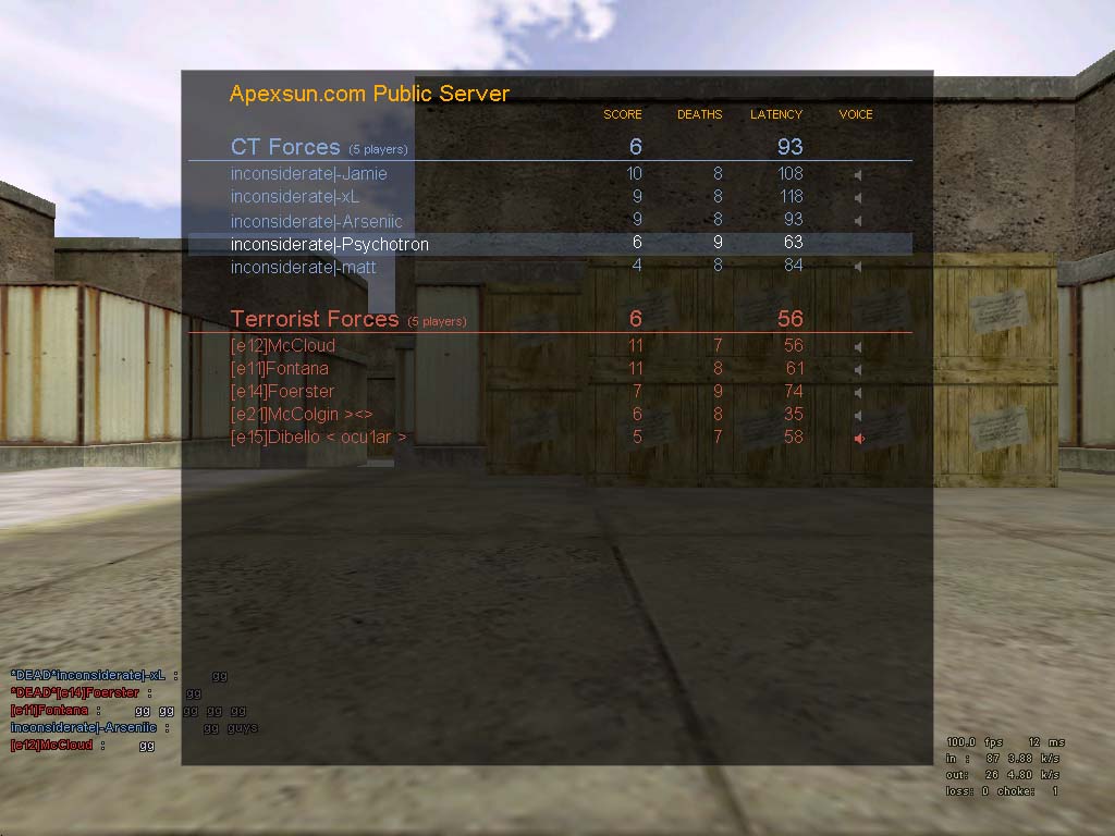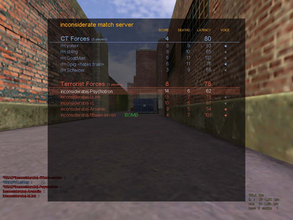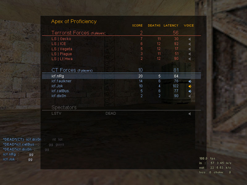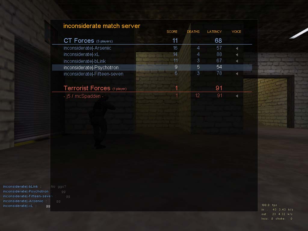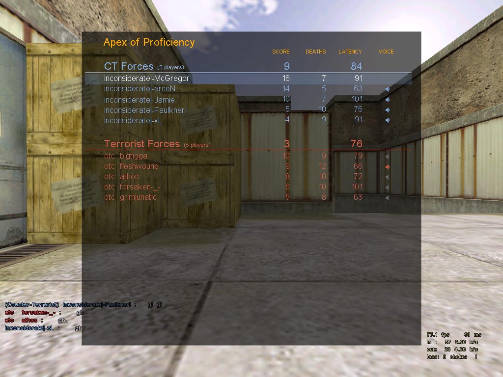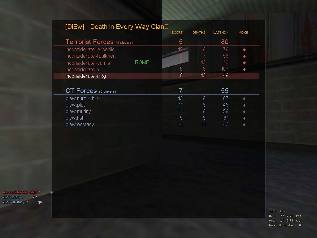 | Face the Music | de_nuke | 2006-08-03 | 09-21 | CT - T | CAL-IM | Loss |