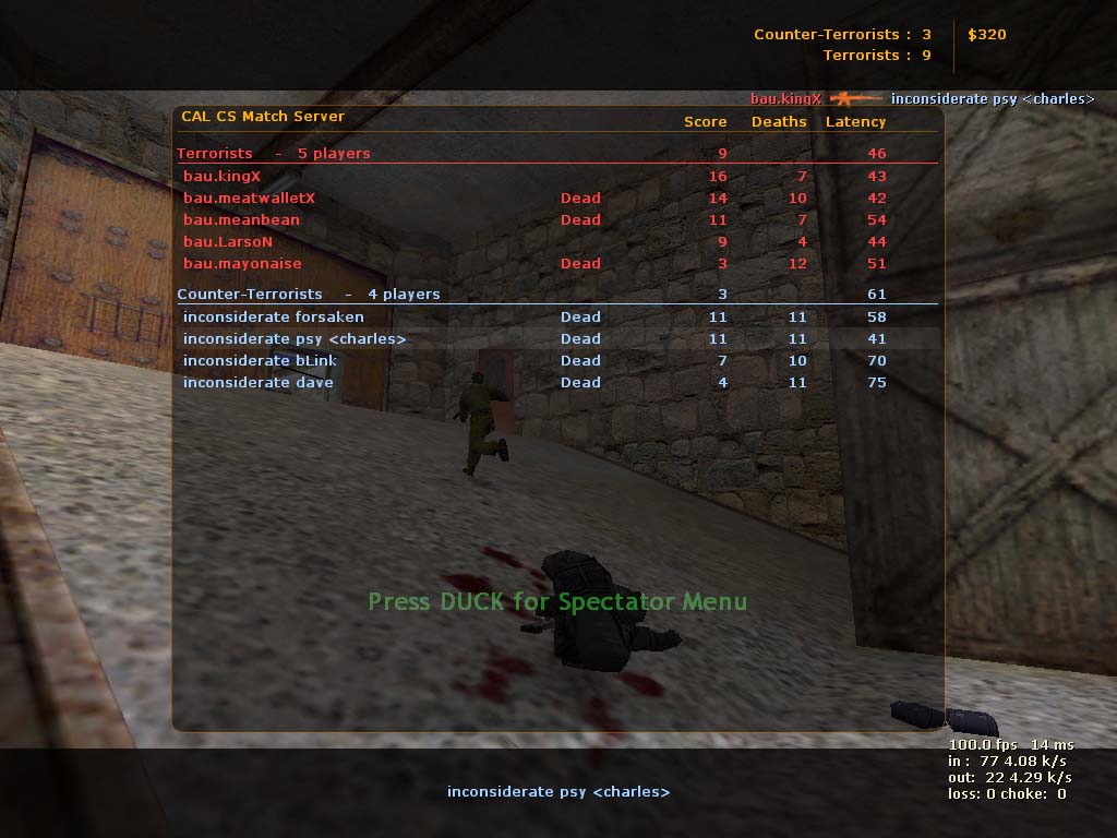 | aU | de_cbble | 2004-03-22 | 14-10 | CT - T | CAL-M | Win |