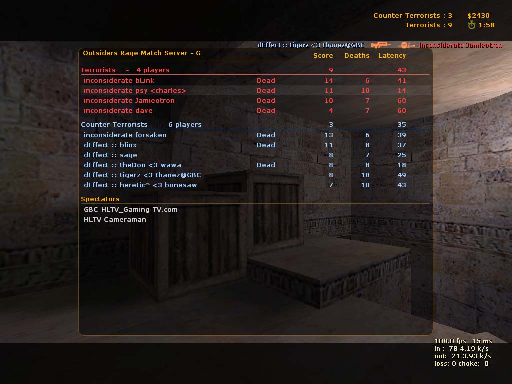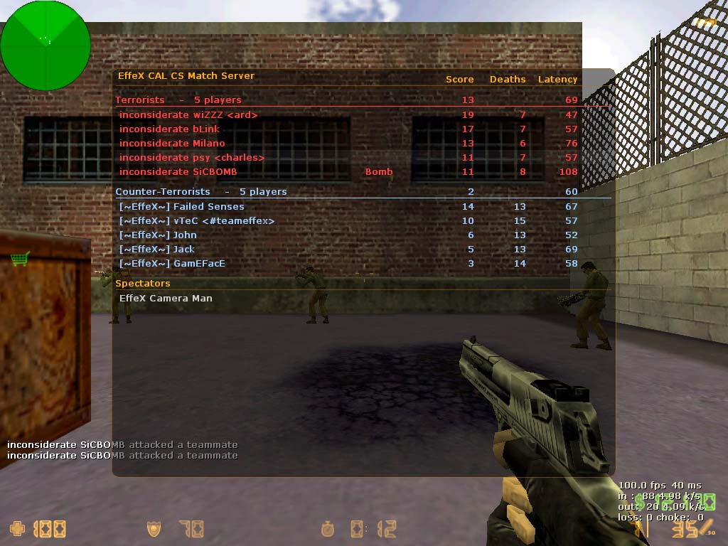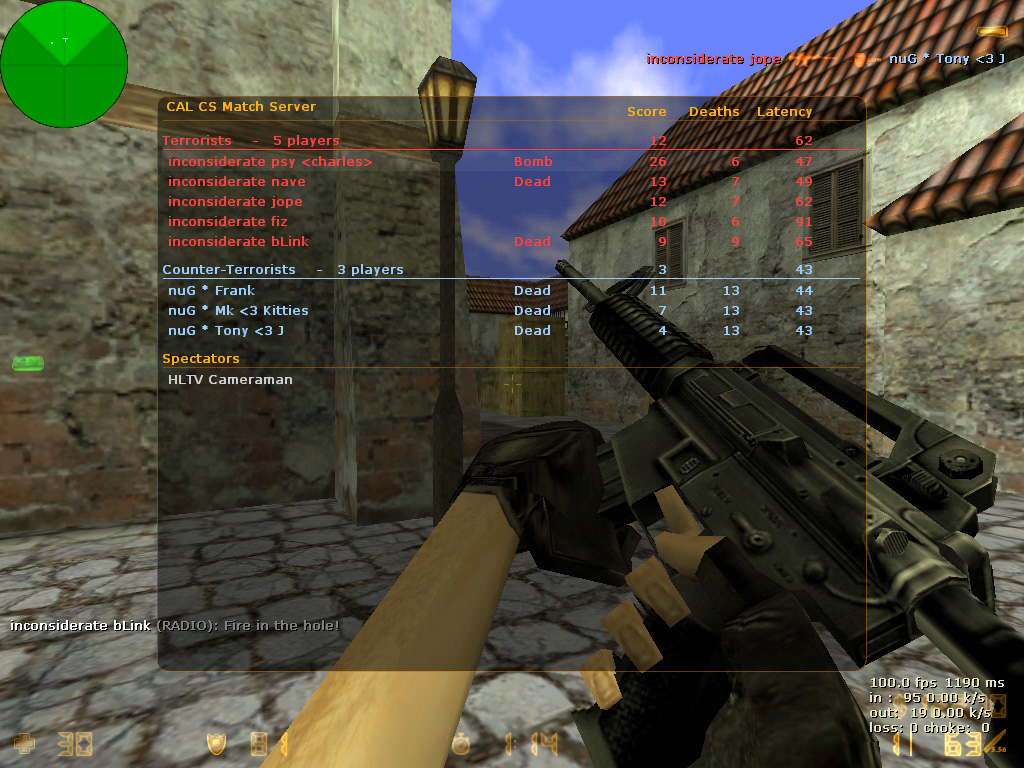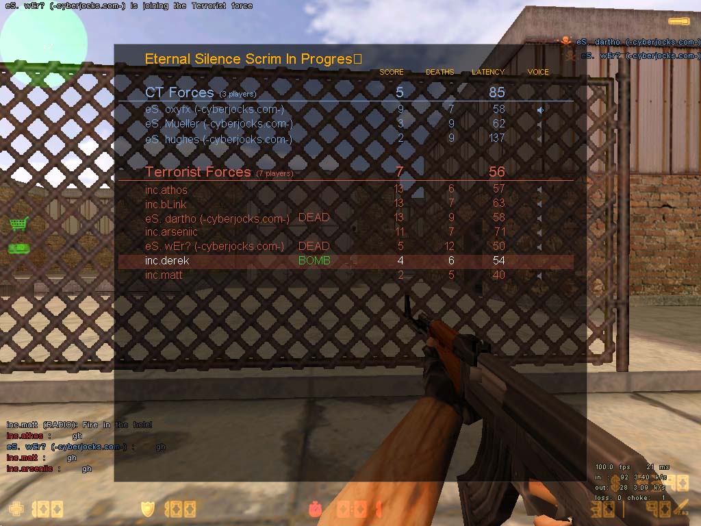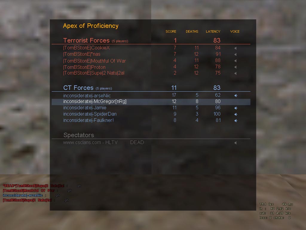 | iFearz | de_nuke | 2004-06-23 | 09-15 | CT - T | CAL-M | Loss |