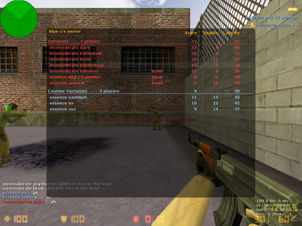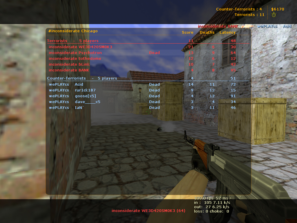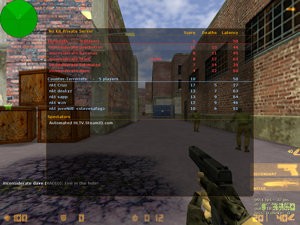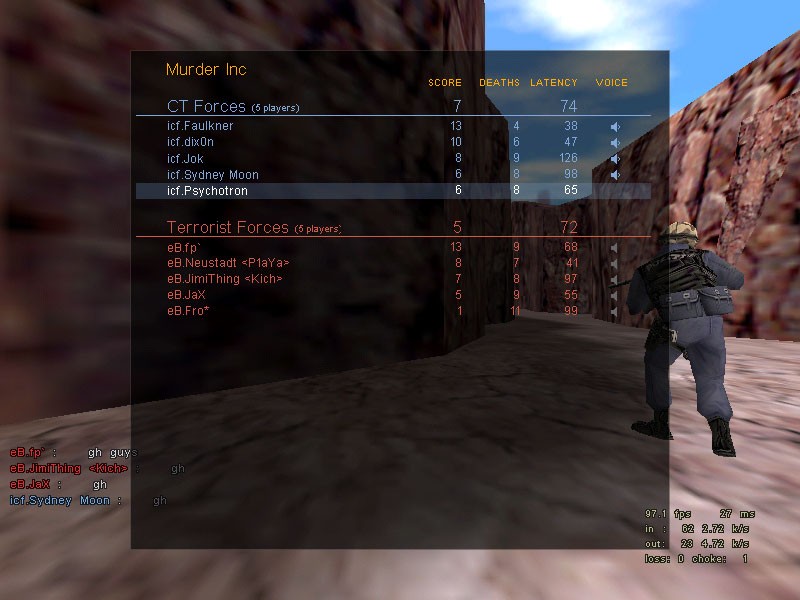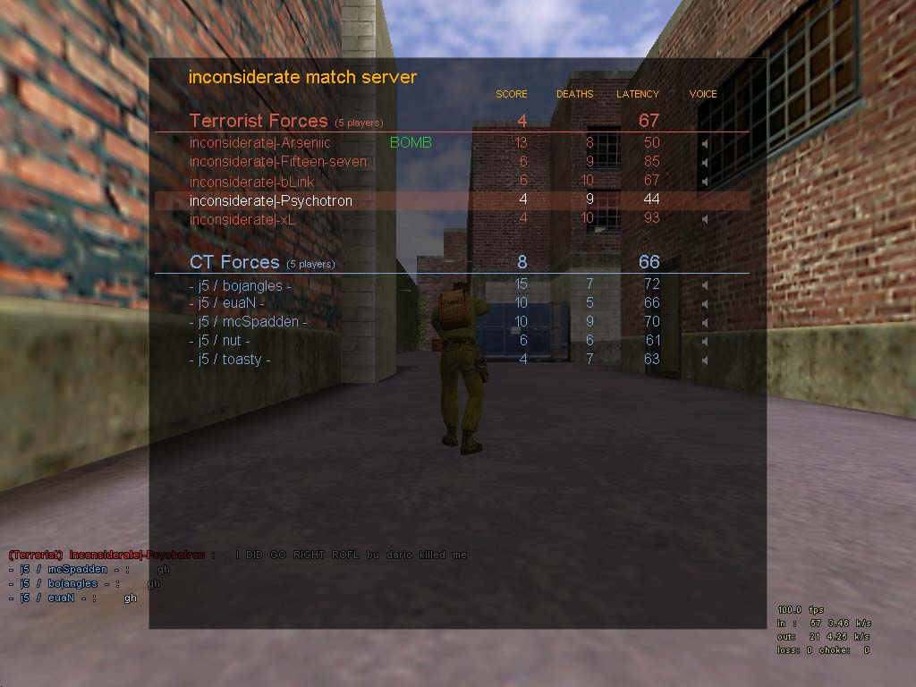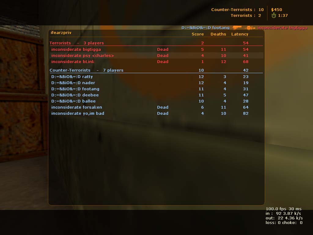 | iFearz | de_nuke | 2004-06-23 | 09-15 | CT - T | CAL-M | Loss |