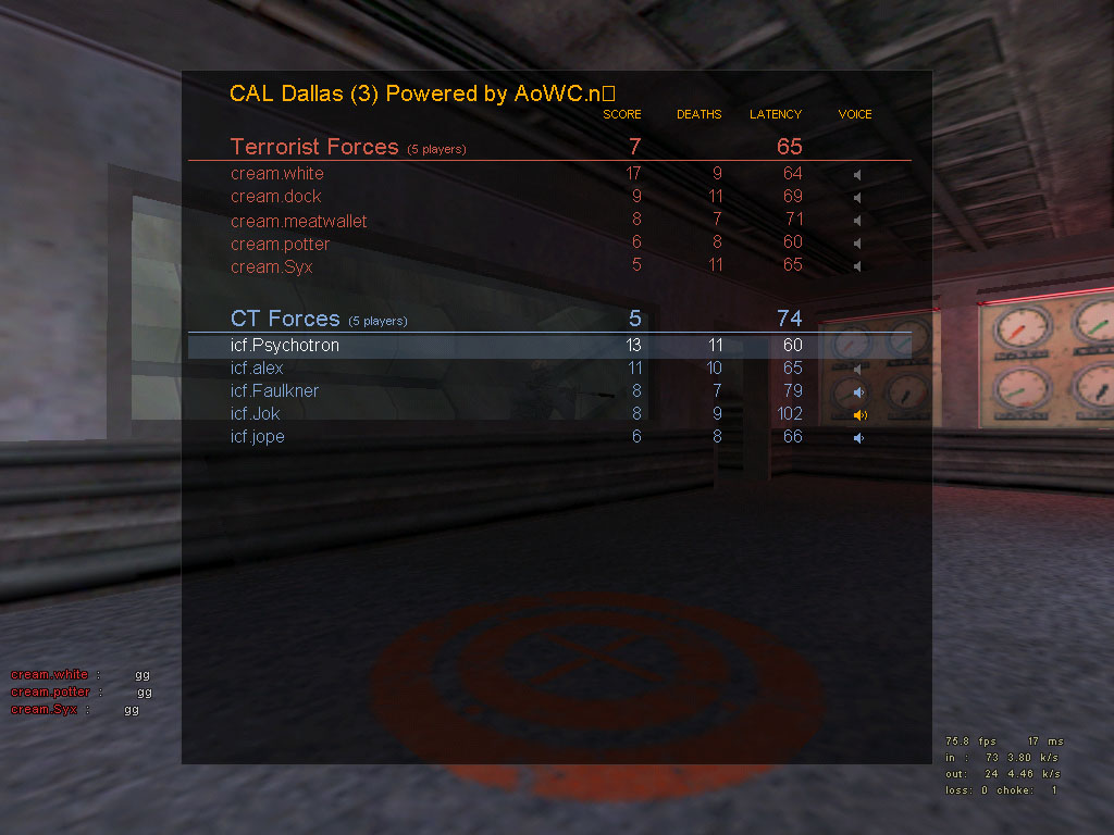 | aai | de_nuke | 2005-01-18 | 28-02 | CT - T | CAL-O | Win |