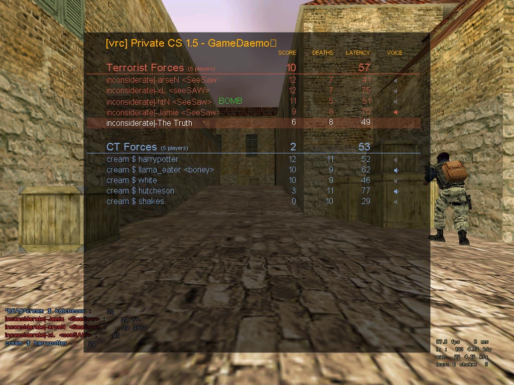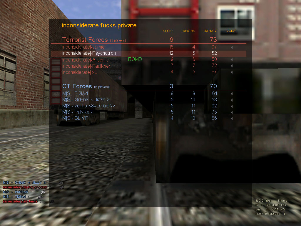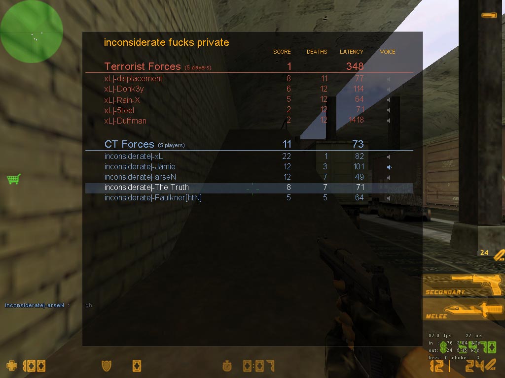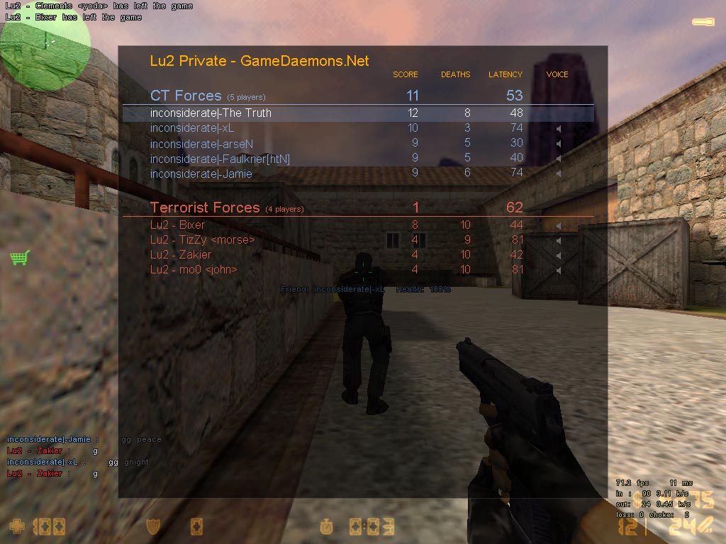 | Truckers United | de_cpl_strike | 2005-06-08 | 09-21 | CT - T | CAL-M | Loss |
