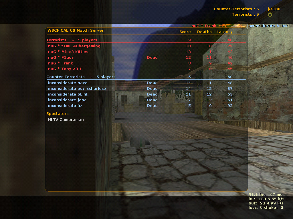 | TAP1 | de_nuke | 2003-10-15 | 09-15 | CT - T | CAL-M | Loss |