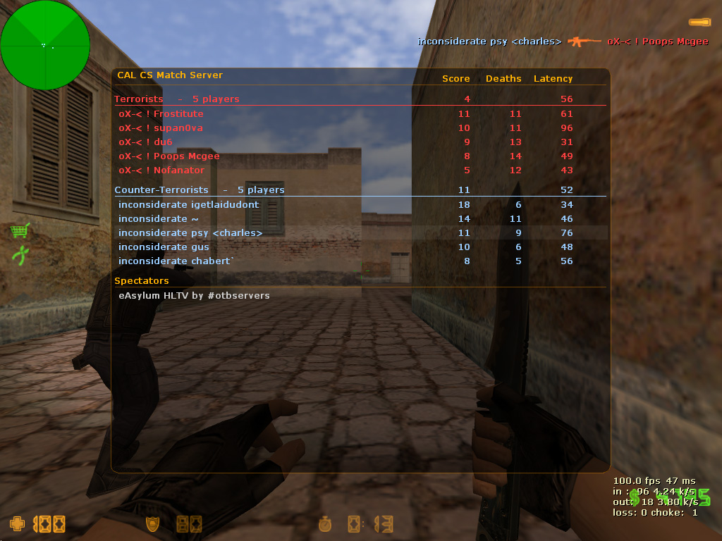| eAsylum | de_cpl_fire | 2005-04-27 | 21-09 | CT - T | CAL-M | Win |