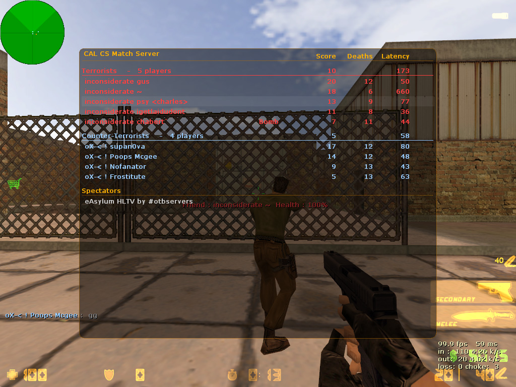 | classiC* | de_cpl_mill | 2005-05-22 | 17-00 | Cheat | CAL-M | Win |
