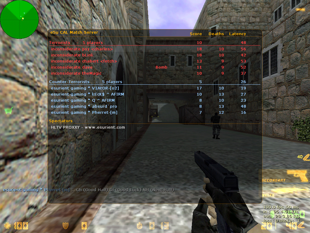 | esurient | de_cbble | 2005-02-08 | 23-07 | CT - T | CAL-O | Win |