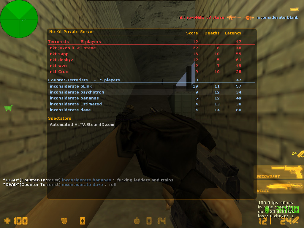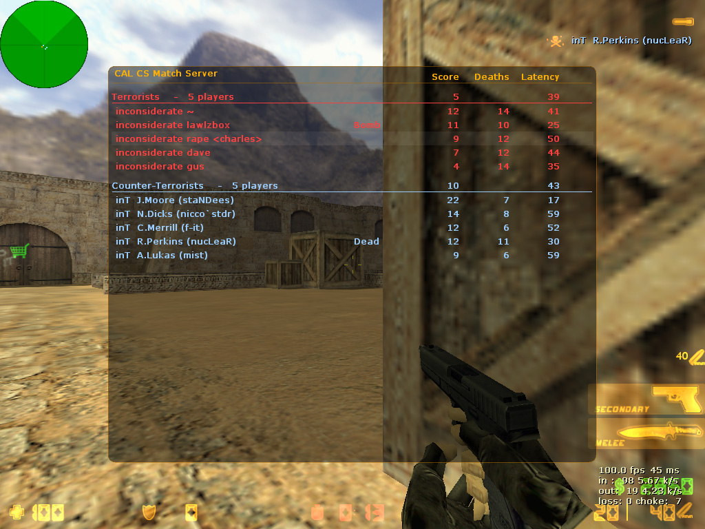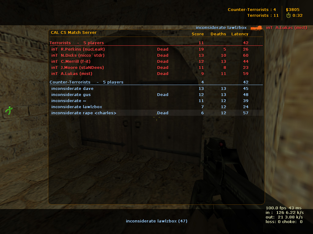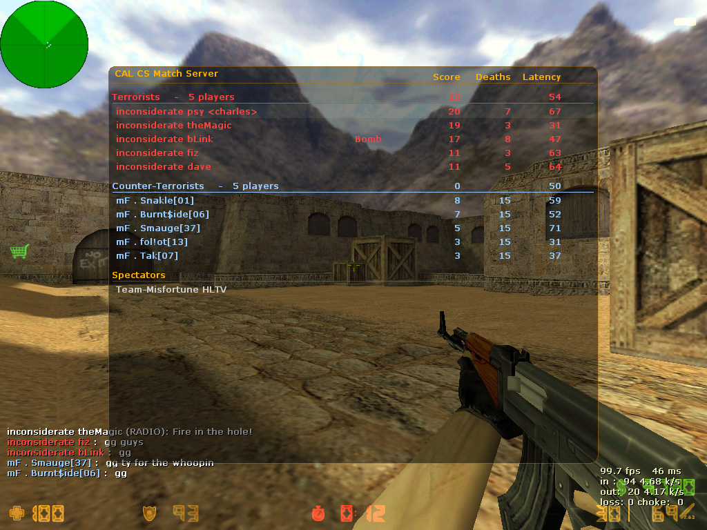| no kit | de_train | 2005-08-07 | 08-22 | CT - T | CAL-M | Loss |
