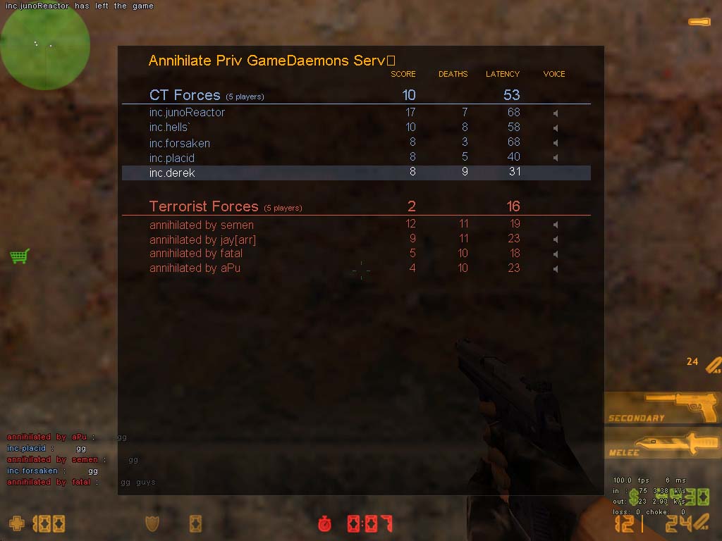 | rock0ut | de_cpl_fire | 2006-07-24 | 24-06 | CT - T | CAL-IM | Win |