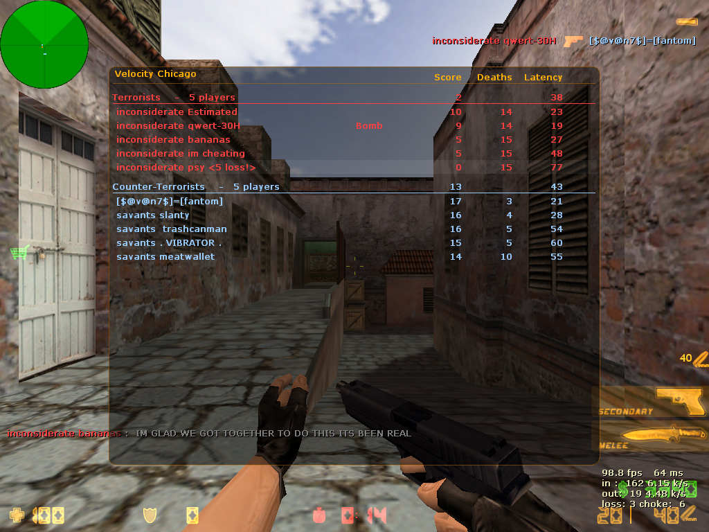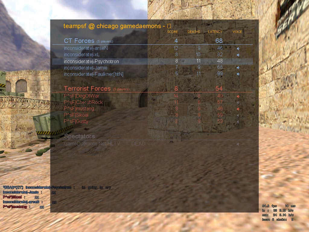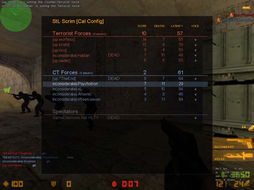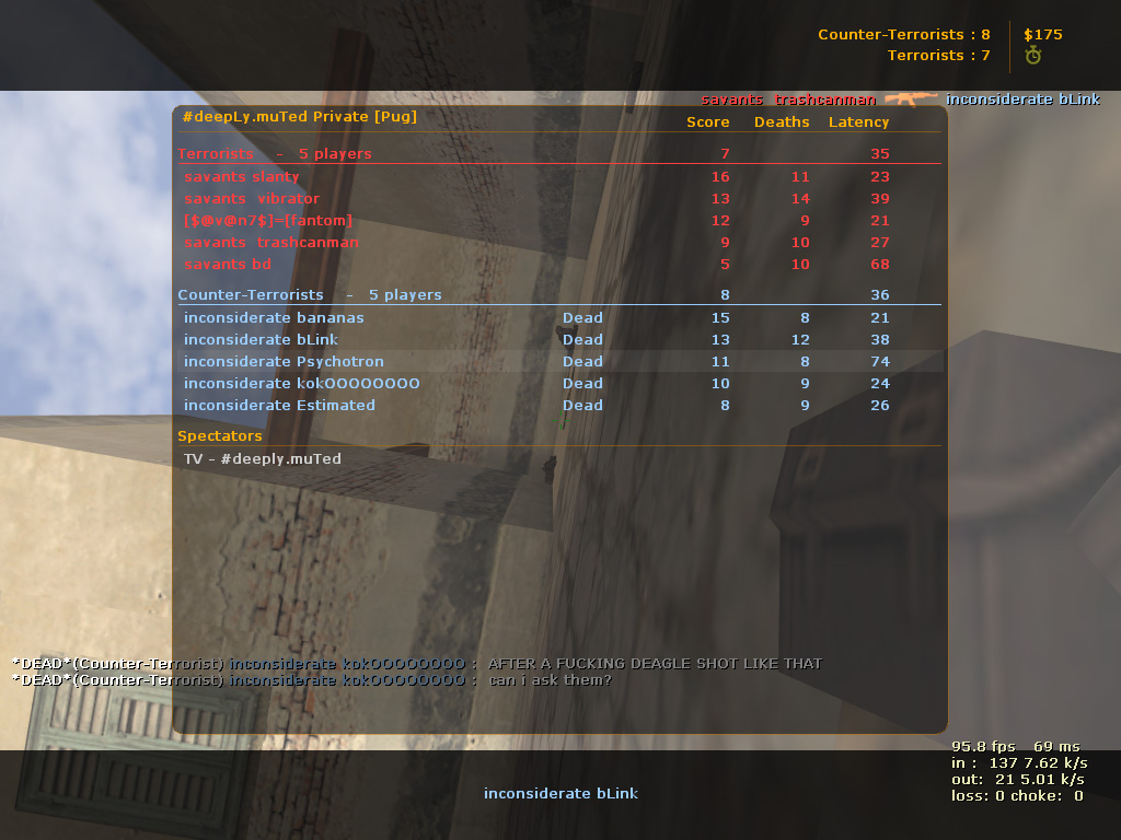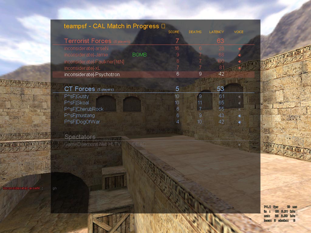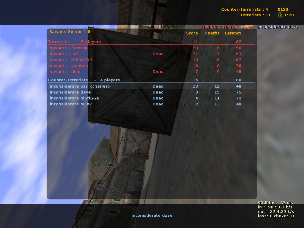 | savants | de_cpl_strike | 2005-08-14 | 07-23 | CT - T | CAL-M | Loss |