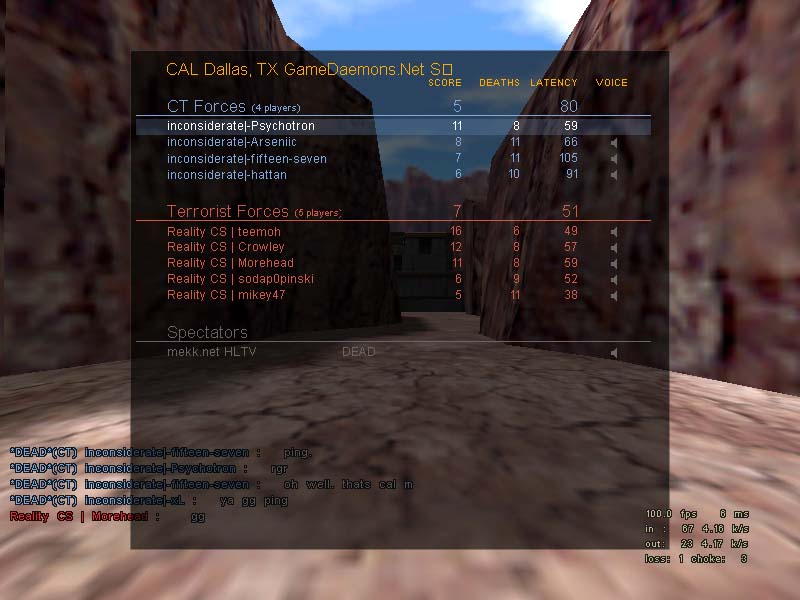 | gsx.tx | de_clan1_mill | 2003-09-03 | 15-15 | CT - T | CAL-M | Tie |
