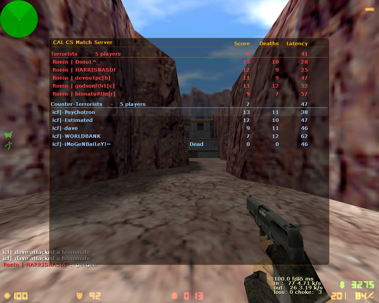 | dodgy | de_cpl_strike | 2006-08-10 | 11-19 | CT - T | CAL-IM | Loss |