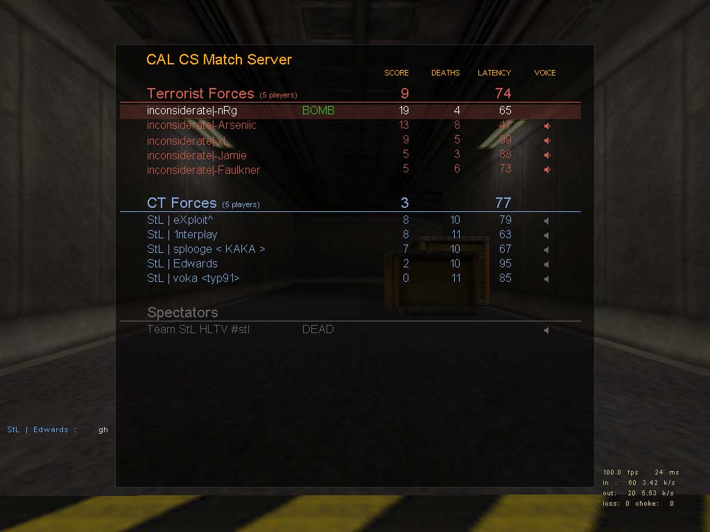 | bcs | de_cpl_strike | 2005-03-08 | 16-01 | CT - T | CAL-O | Win |