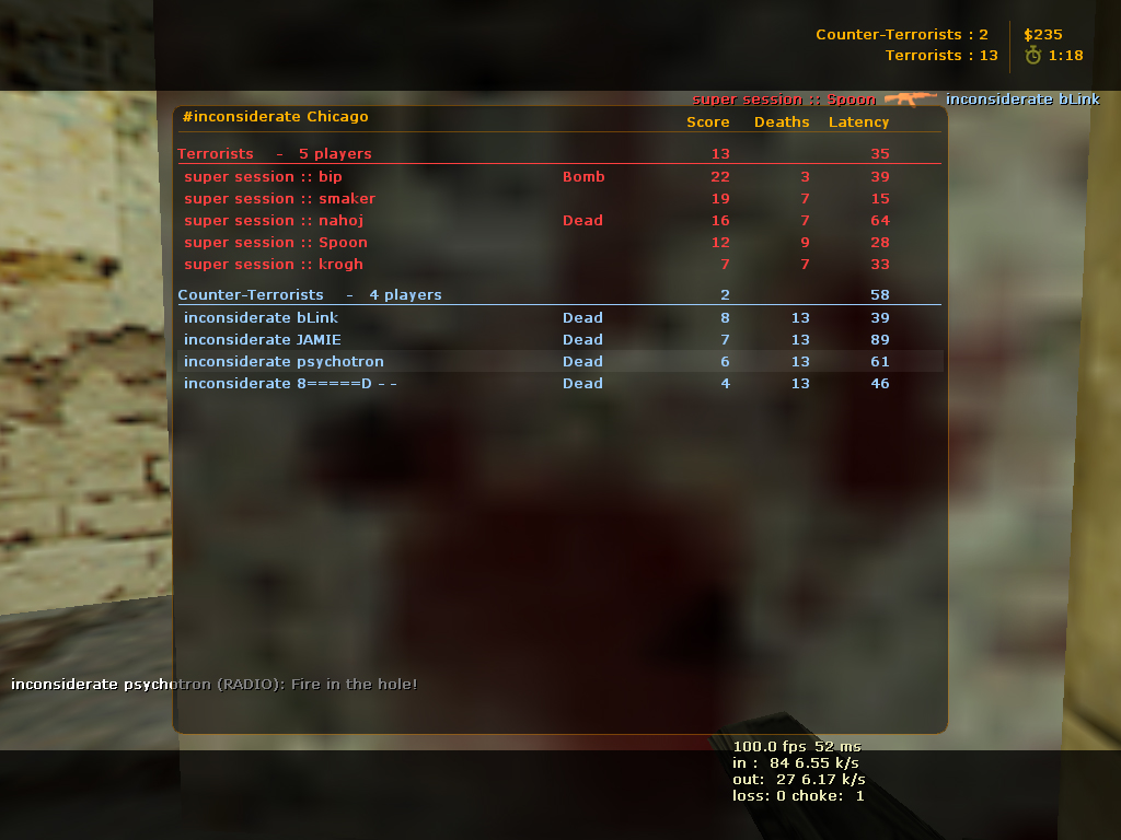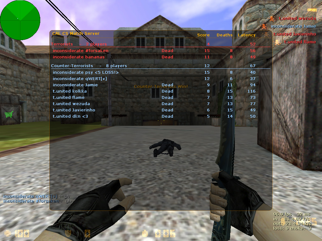 | flawless | de_train | 2004-03-08 | 06-18 | CT - T | CAL-M | Loss |