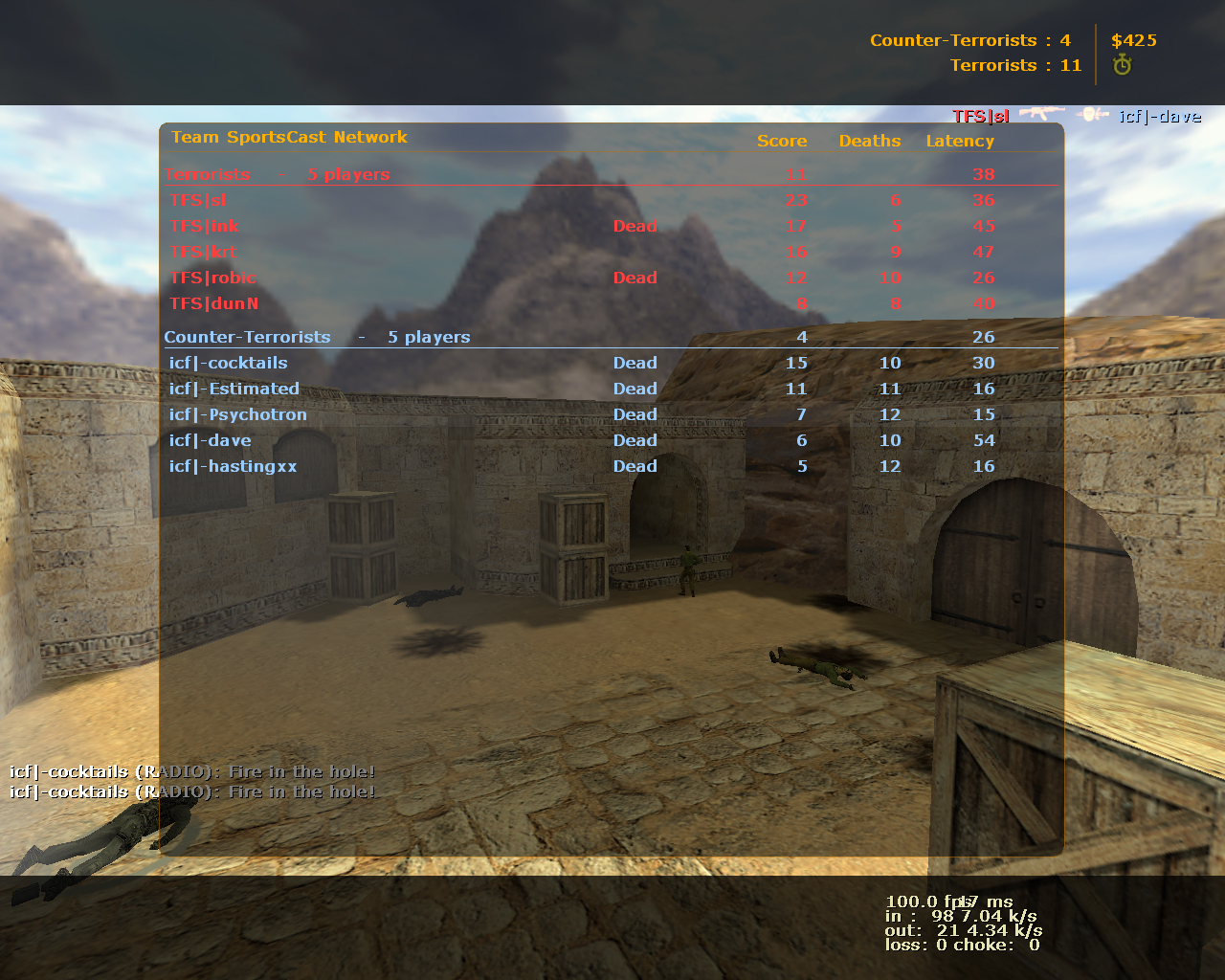 | eS | de_cpl_fire | 2003-05-28 | 11-13 | CT - T | CAL-M | Loss |