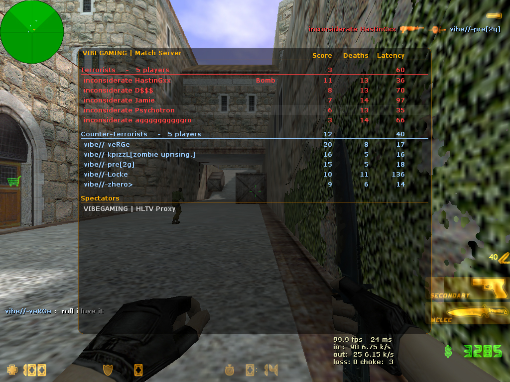 | Vibe Gaming | de_cbble | 2006-08-31 | 17-13 | CT - T | CAL-IM | Win |